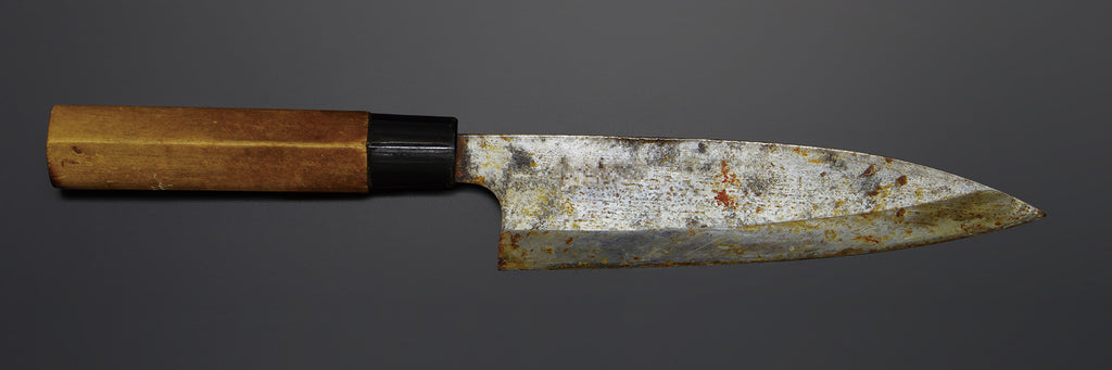 - Rusted knife with scratches and tarnish